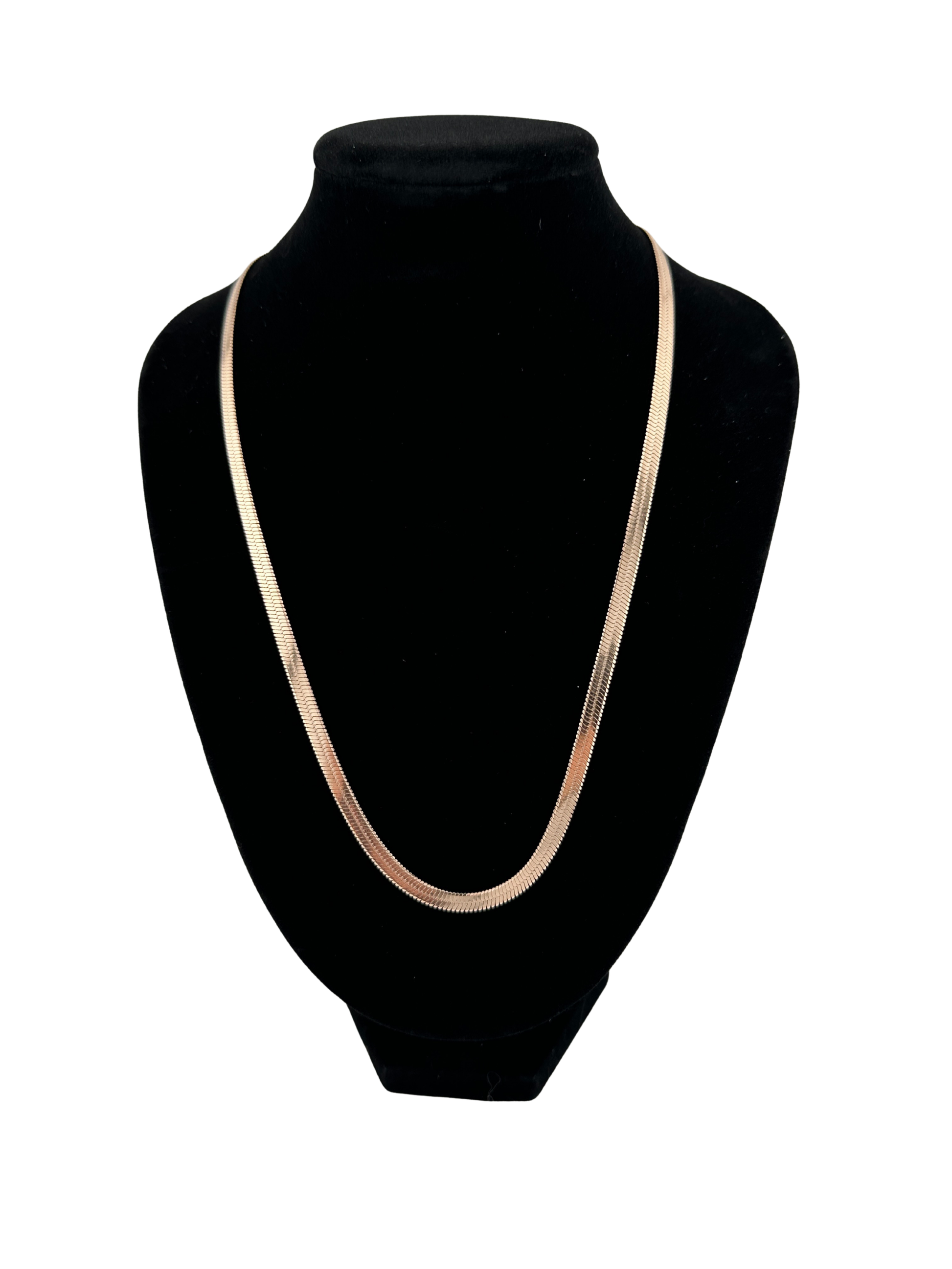 Herringbone Classics — a sleek 4mm stainless-steel herringbone finished in Silver, Gold, or Rose.