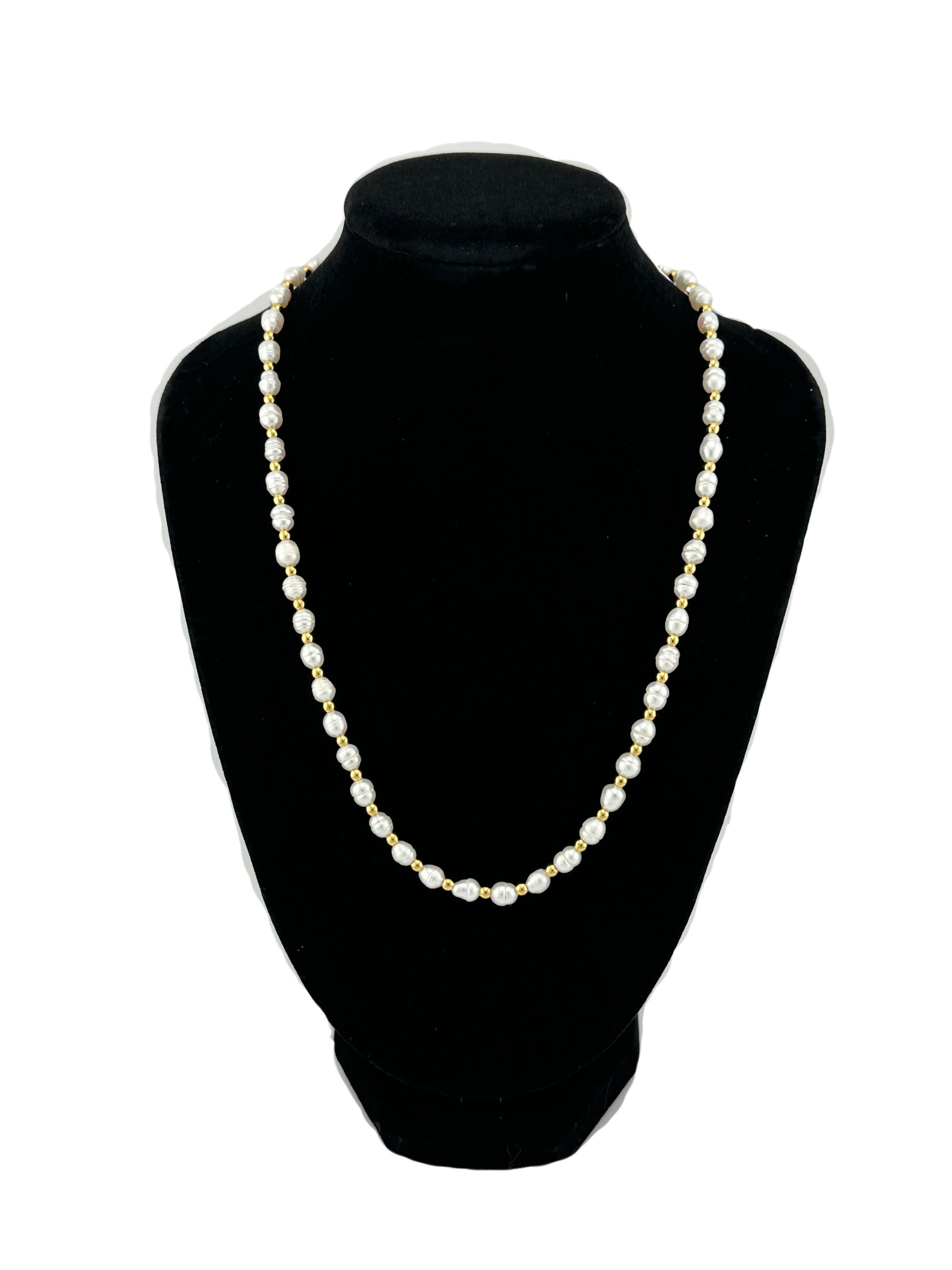 Real texture, zero fuss. The Lustra Baroque Pearl Station Necklace pairs organic freshwater pearls with a minimalist gold-plated stainless steel chain. Wear it solo or stack it; let the necklace sit at the collarbone or layer it with herringbones and ropes.